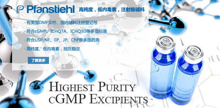 “熱烈祝賀Pfanstiehl的注射級甘氨酸Glycine(G-140)喜獲CDE登記號F20250000403, 這是Pfanstiehl產品獲得的第18個CDE登記號!”甘氨酸在醫藥輔料制劑中應用廣泛,, 可作為緩沖劑,增溶劑,穩定劑等,具有諸多優勢。Pfanstiehl秉承一貫高品質理念,為滿足全球生物制藥行業對于高品質甘氨酸的需求,隆重推出的注射級甘氨酸Glycine (G-140), 具有超高純度,超低內毒素,超低金屬殘留的特點,單獨檢測29種金屬離子,并且新增DNA,RNA,DNA酶,RNA酶和脂肪酶,亞硝酸鹽等多項質量指標的檢測,符合多國藥典規定(USP, EP, BP, JPE, ChP),可用于生物治療性藥物和疫苗的生產。產品信息:· 產品名稱:Glycine, High Purity, Low Endotoxin, Low Metals, USP, EP, BP, JPE, ChP (G-140)· 中文名稱:甘氨酸· 分子式:C2H5NO2· 分子量:75.07 g / mol· CAS號:56-40-6· 產品貨號:G-140產品特點: · 超高純度,超低內毒素,超低微生物含量,超低金屬雜質殘留· 質量指標新增DNA,RNA,DNA酶,RNA酶,脂肪酶和亞硝酸鹽檢測· 符合多國藥典:USP, EP, BP, JPE, ChP· 符合ICH Q3D標準· 符合GMP標準· 已獲DMF和CDE登記號 產品應用:· 緩沖劑· 穩定劑· 增溶劑如果您對Pfanstiehl注射級別Glycine G-140感興趣,歡迎聯系Pfanstiehl 中國區代理商北京西美杰科技有限公司獲得如下詳細的產品概況說明文件和測試樣品。Pfanstiehl Inc.最新產品系列如下,歡迎聯系北京西美杰科技有限公司獲取100g裝免費樣品。北京西美杰科技有限公司為Pfanstiehl中國代理,為客戶提供完善的技術支持與售后服務。歡迎撥打西美杰客服電話400-050-4006或者登陸網站www_xmjsci_com.zy122.com了解更多信息。 更多>